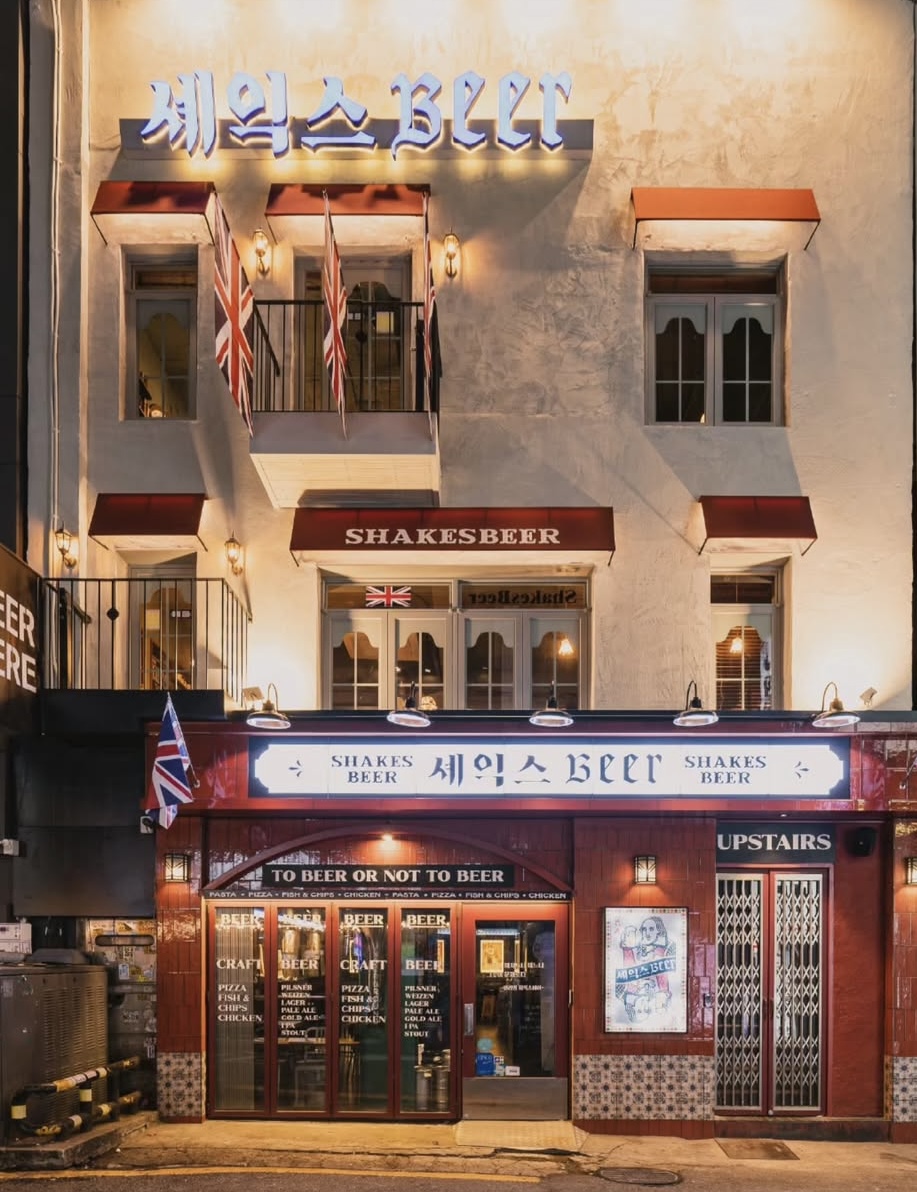 셰익스비어 라거 6,500 | 한여름밤의 꿈 필스너 6,900 | 햄릿 잉글리쉬 비터 6,900 | 킹 리어 스타우트 6,900 | 런던 피쉬 엔 칩스 18,900 | 노팅힐 코티지 파이 16,900 | 소시지&매시드 포테이토 18,900 | 블루베리 마스카포네 치즈 14,900 | 청양고추 페페로니피자 21,900 | 갈릭쉬림프 피자 21,900 | 부라타 치즈샐러드 17,500 | 트러플 감자튀김 9,900 | 나쵸칩 11,900 | 위스키 하이볼 6,900 | 페일에일 7,500 | 코젤다크 6,900