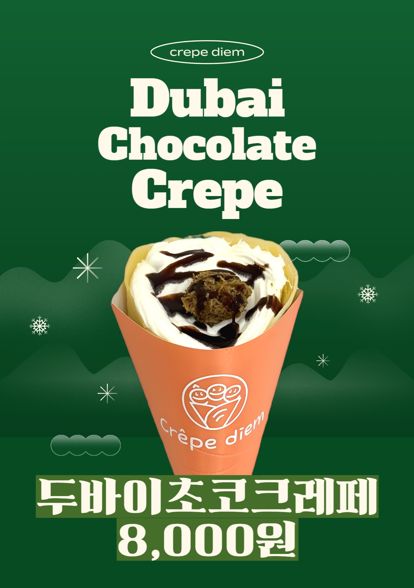 슈가버터크레페 3,500 | 누텔라크레페 4,000 | 로투스크레페 4,000 | 애플잼시나몬크레페 4,000 | 솔티드캬라멜크레페 4,000 | 누텔라코코넛 4,500 | 초코바나나생크림크레페 5,500 | 딸기생크림크레페 6,000 | 바나나딸기생크림크레페 6,500 | 망고코코넛크레페 5,500 | 브라우니생크림크레페 6,500 | 메이플피칸치즈케익크레페 7,500 | 두바이초코생크림크레페 8,000 | 아메리카노 3,800 | 카페라떼 4,300 | 바닐라라떼 4,800 | 녹차 4,000 | 얼그레이 4,000 | 루이보스 4,000 | 캐모마일 4,000 | 아이스티 4,000 | 메론소다 4,500 | 레몬에이드 4,500 | 딸기라떼 5,000 | 초코라떼 5,000 | 바나나쉐이크 5,500