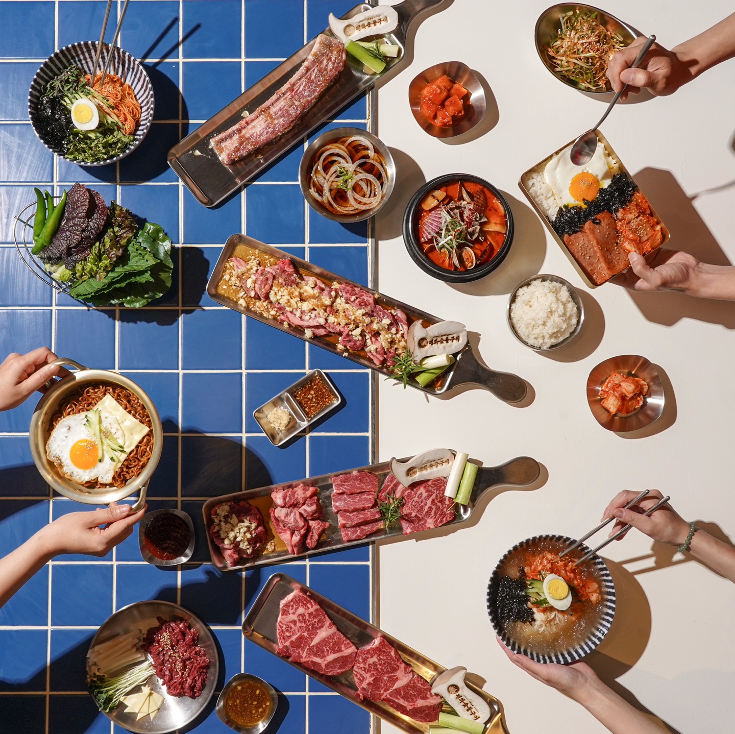 차돌박이 육회쌈 23,900 | 마늘양념 통갈비살(180g) 12,500 | 소갈비살(180g) 12,500 | 깍뚝 꽃살(180g) 27,000 | 와규등심(180g) 25,000 | 이베리코 항정살(180g) 11,900 | 김치말이국수 7,000 | 비빔국수 7,000 | 된장찌개 5,000 | 추억의 도시락 6,000 | 계란찜 5,000