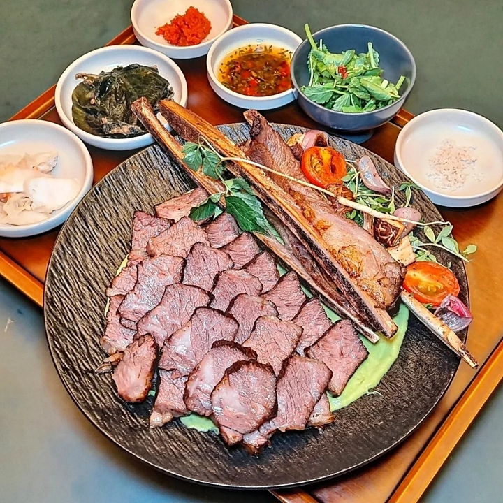 육적 43,000 | 광어의 정원 29,000 | 감자전과 성게알 크림 25,000 | 우대갈비찜 (M) 78,000 | 우대갈비 반상 (M) 77,000 | 육회 25,000 | 한돈 목살과 새우젓 파스타 22,000 | 한돈 목살과 채소 구이 26,000 | 단옥수수와 감자 13,000 | 비빔밥 15,000 | 육회비빔밥 15,000 | 봄나물 봉골레 22,000 | 제육볶음 12,000 | 김치볶음밥 12,000 | 들깨크림수제비 13,000 | 순두부찌개 11,000 | 전통주, 와인 등 다양한 주류 변동가격(업주문의)