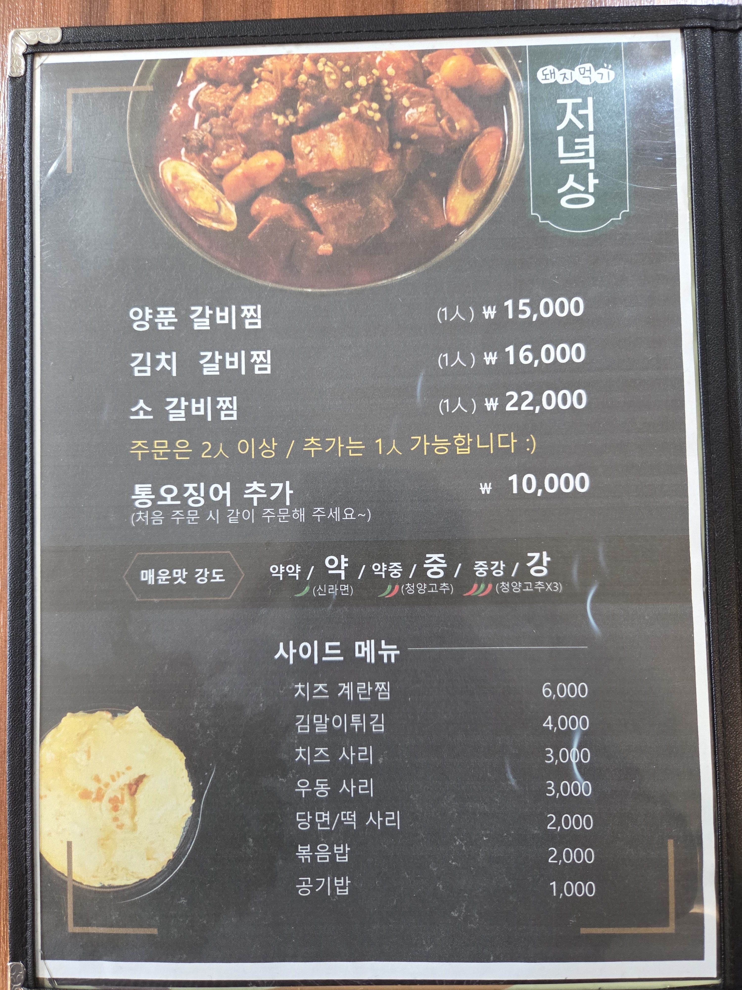 양푼매운갈비찜(중) 30,000 | 양푼매운갈비찜(대) 45,000 | 점심메뉴 9,500