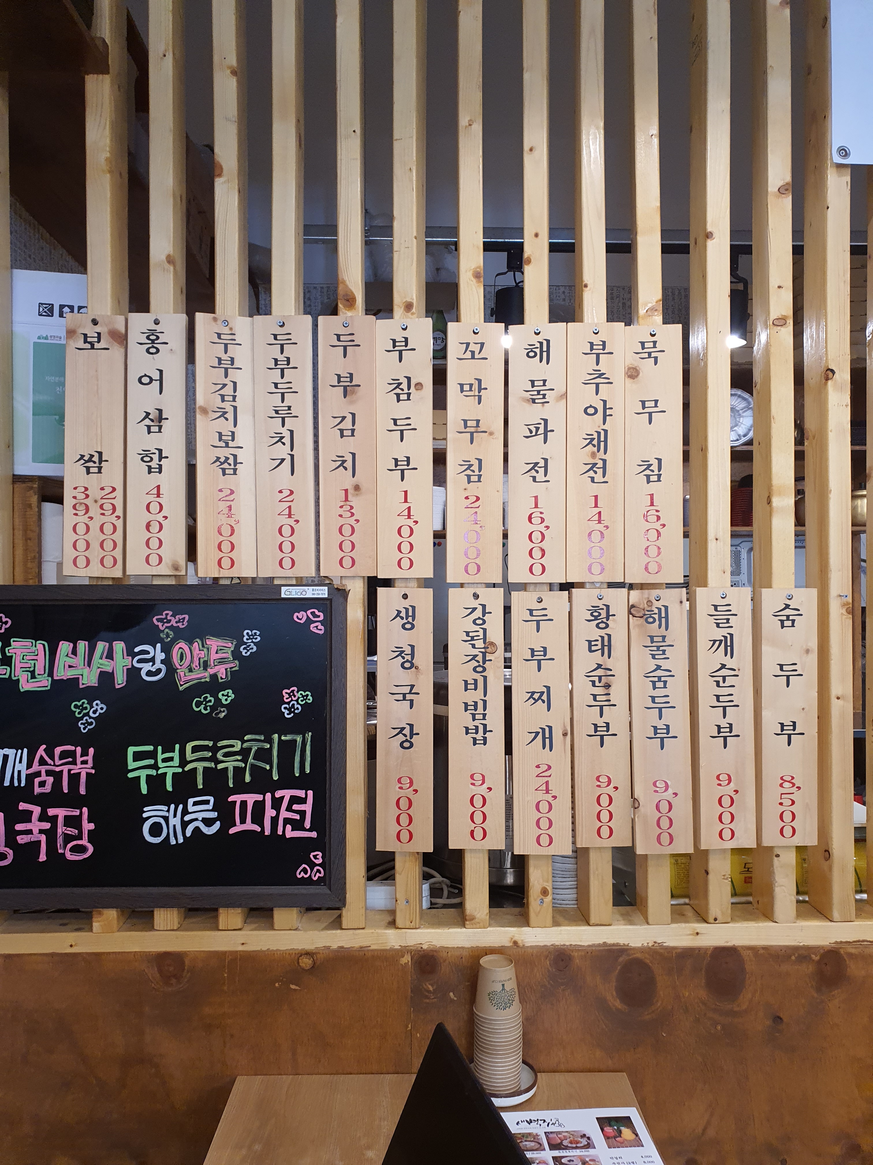 콩국수(여름) 10,000 | 해물순두부 9,800 | 황태순두부 9,500 | 뚝배기불고기 9,800 | 해물파전 28,000 | 두부두루치기 32,000 | 보쌈 29,000 | 청국장 9,000