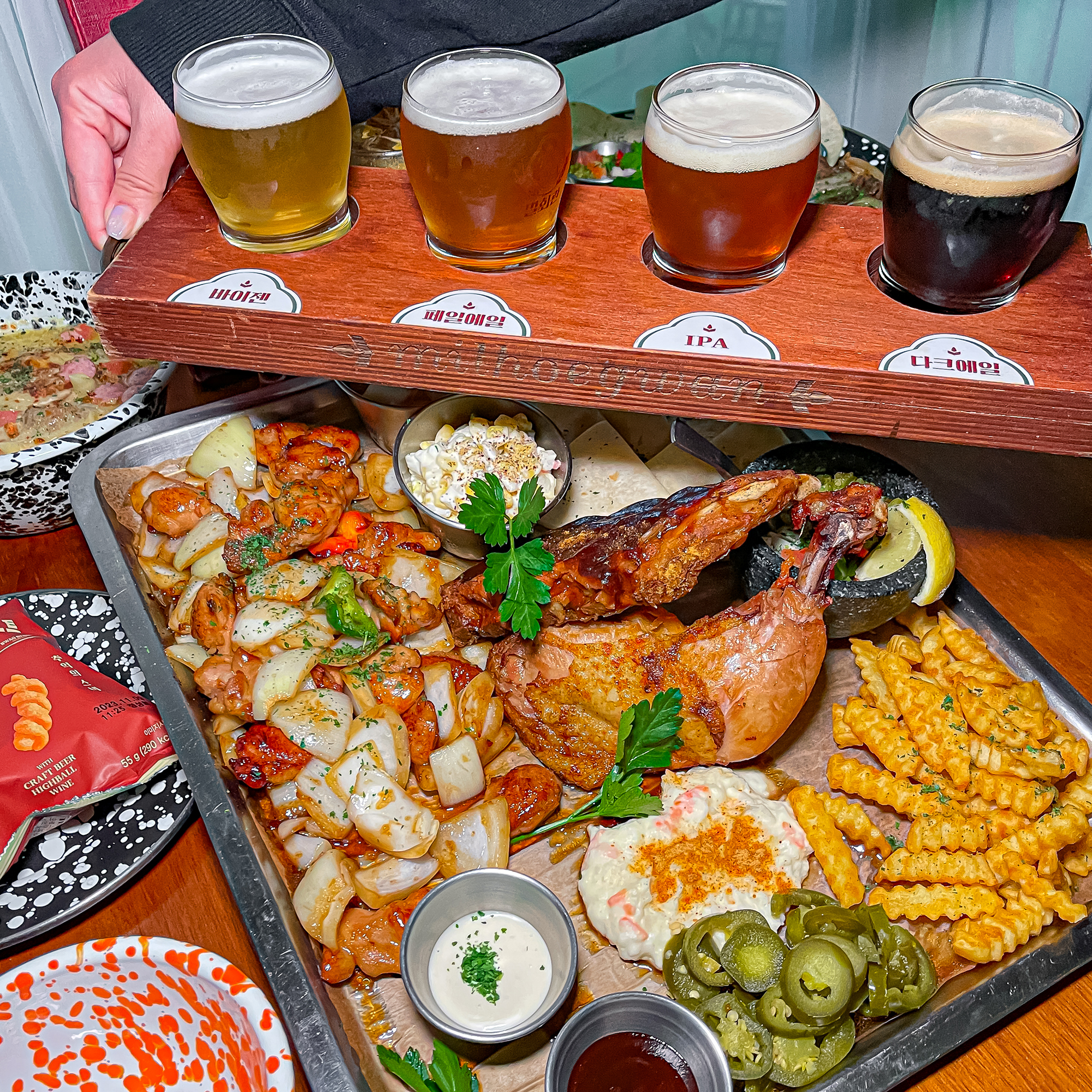 시그니쳐플래터 43,000 | 바베큐플래터 47,000 | 크리스피통순살치킨 19,000 | 순살크림치킨로제에디션 21,000 | 불고기&쉬림프화이타 31,000 | 트러플크림스튜 23,000 | 백합봉골레스튜 23,000 | 콘치즈불닭 25,000 | 쉬림프치즈마카로니 25,000 | 에그인헬 23,000 | 브리치즈파스타 19,000 | 부라타샐러드 21,000 | 브리치즈구이 15,000 | 하몽플레이트 29,000 | 크림치즈카나페 19,000 | 소시지&감자튀김 18,000 | 프라이즈바스켓 15,000 | 트러플감자튀김 15,000 | 나쵸with시그니쳐디핑 12,000 | 버터먹태 18,000